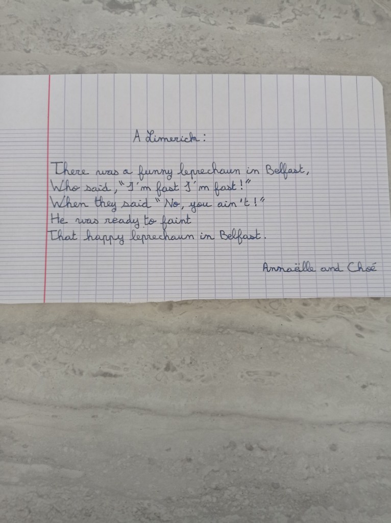 You will find below some limericks written by 6e from our Middle School. Some of them have recorded their poems. Hope you’ll enjoy!